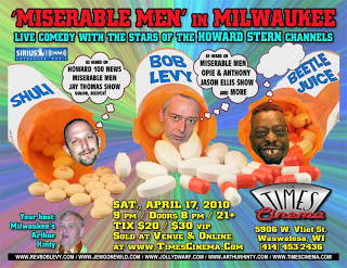 Direct from Howard Stern’s radio show, the Miserable Men of comedy are coming to Milwaukee with The Rev. Bob Levy Comedy Show! The show will take place at 9pm at The Times Cinema (5906 W. Vliet Street, Milwaukee). Fun Fact: The second Milwaukee Comedy Festival (then called the Sketch & Improv Festival) took place at the Times Cinema, it’s a GREAT place to see a show! The show is hosted by Milwaukee comedian Arthur Hinty, and features Bob Levy, Shuli and Beetlejuice.