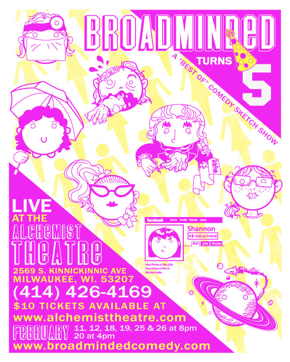 Broadminded, Milwaukee’s only all female sketch comedy group, is about to celebrate its fifth anniversary, and to celebrate the broads are throwing a party, complete with cake and party favors. This anniversary show will feature familiar characters from fan favorite sketches: Sally Ann Petruski, famous nannies, our founding fathers, and the ousted planet, Pluto, to name a few.