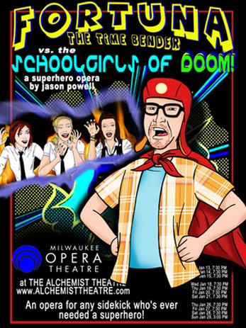I can’t imagine anything closer to that experience on the live stage than “Fortuna the Time Bender vs. the Schoolgirls of Doom.” It’s a superhero opera by Jason Powell. And this is its last weekend.