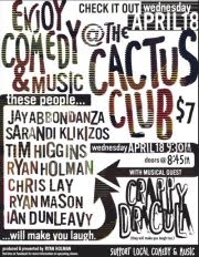 The monthly Cactus Club Comedy Show includes seven stand-up comics and the band Crappy Dracula.