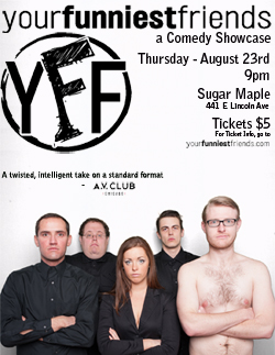 The comedians of Your Funniest Friends are a collection of the most likable and friendly idiots in the city of Chicago. And they are heading up to Milwaukee August 23rd to tell some jokes at Sugar Maple!