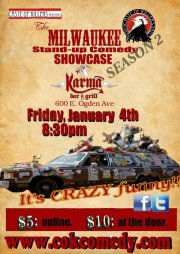 Then, at 8:30 p.m., Friday, Jan. 4, Jason Hillman, of the Caste of Killers Comedy Collective, emcees the Milwaukee Stand-Up Comedy Showcase at the Karma Bar & Grill, 600 E. Ogden Ave. Scheduled appearances include: