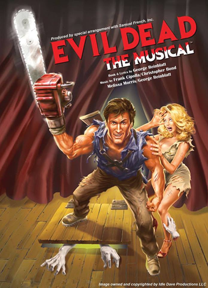 “Five college students spend the weekend in an abandoned cabin in the woods, accidentally unleashing an evil terror. In this comedic musical adaptation of the 1980s horror franchise, characters and demons sing and dance to original songs written to pay homage to the terrifying trilogy. And, as in the films, Ash is there to dish out his various one liners and fight the never ending demons.